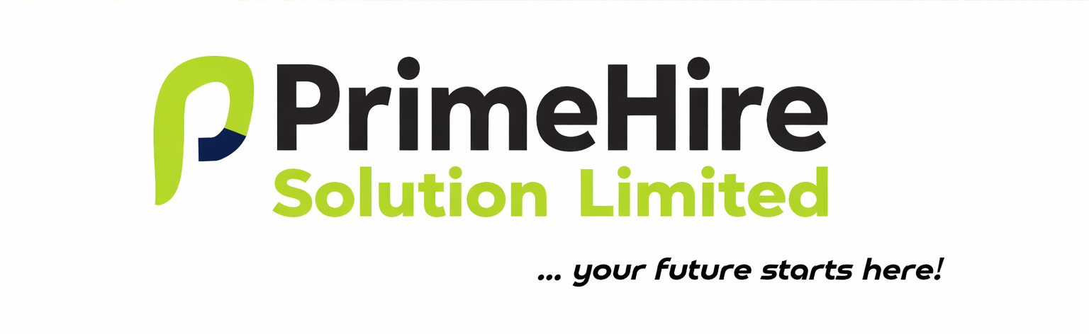 Business Facebook cover photo for PrimeHire Solution Limited, featuring the company's logo and tagline 'your future starts here!'